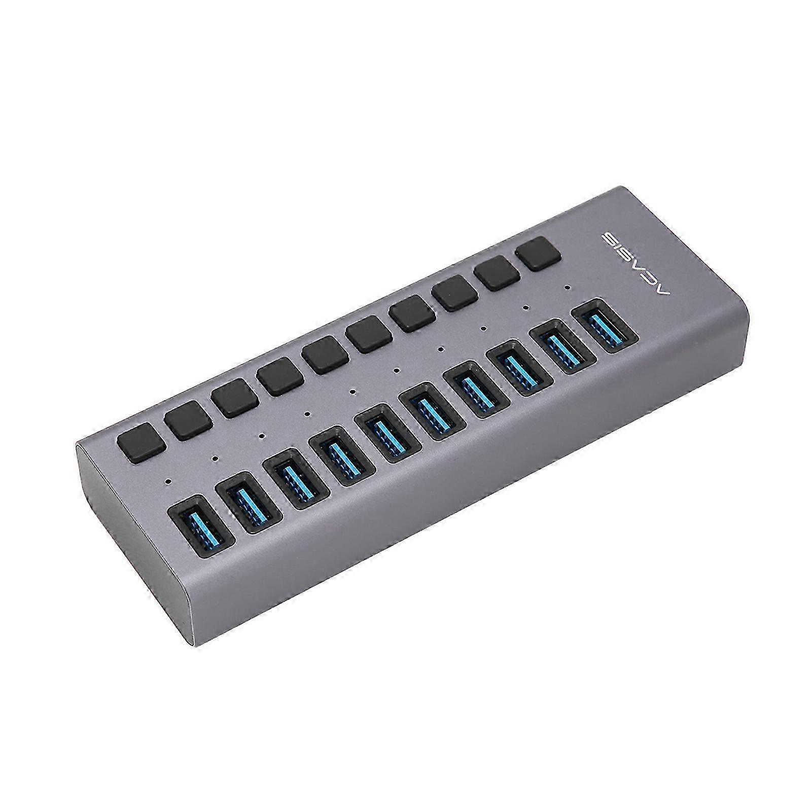 USB3.0 Hub Fast Transmission Speed Large Current Output Partition Independent Switch 10 Port USB3.0 Docking StationGray US 26s
