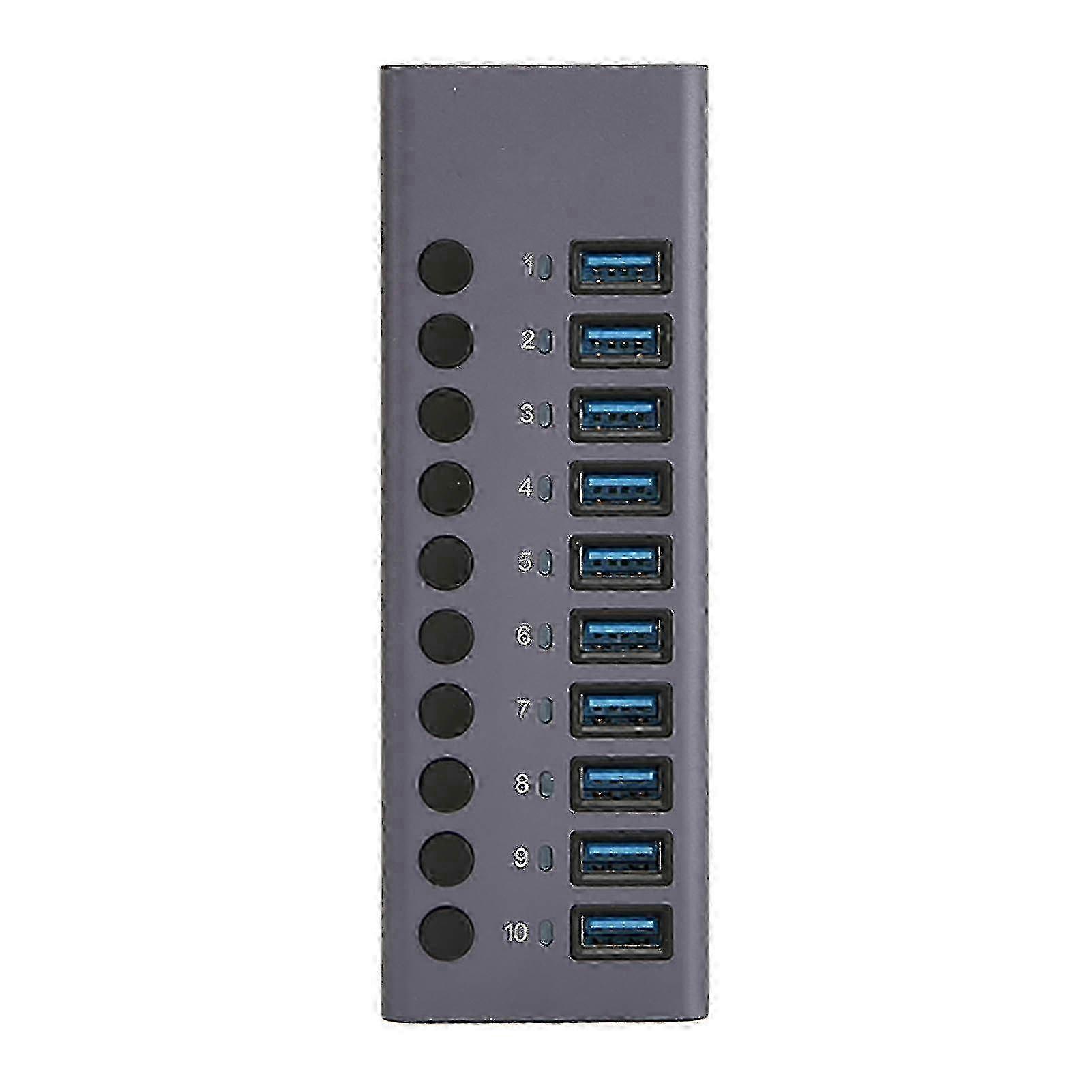 Powered USB Hub 10 Ports Individual Switch Aluminum Alloy 5Gbps Transmission USB 3.0 Hub for PC Laptop HDD 100‑240V 2025