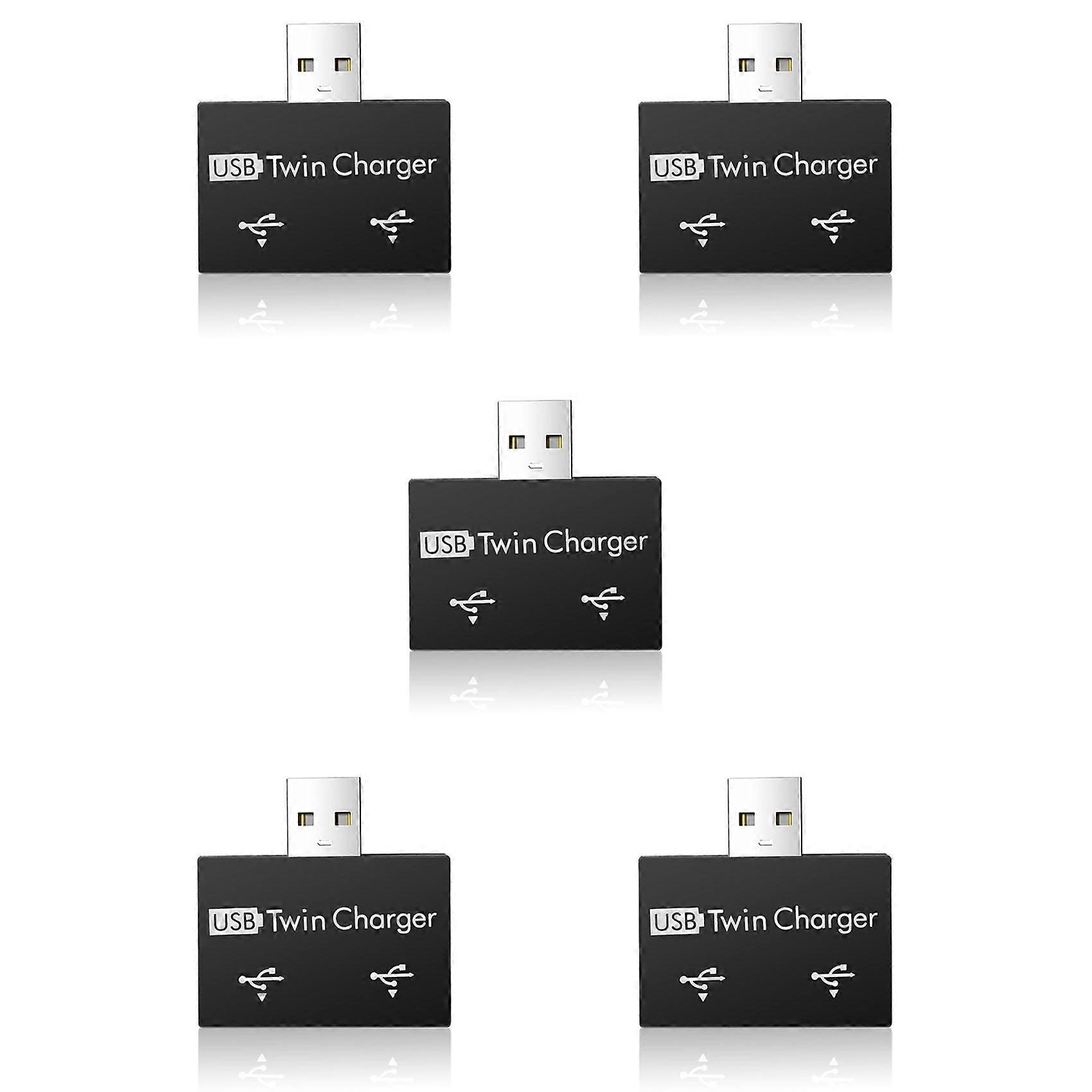 5X Portable Mini USB Hub to 2 Port Charger Hub Adapter USB Splitter Dual USB Charging Extender for Phone Computer Black