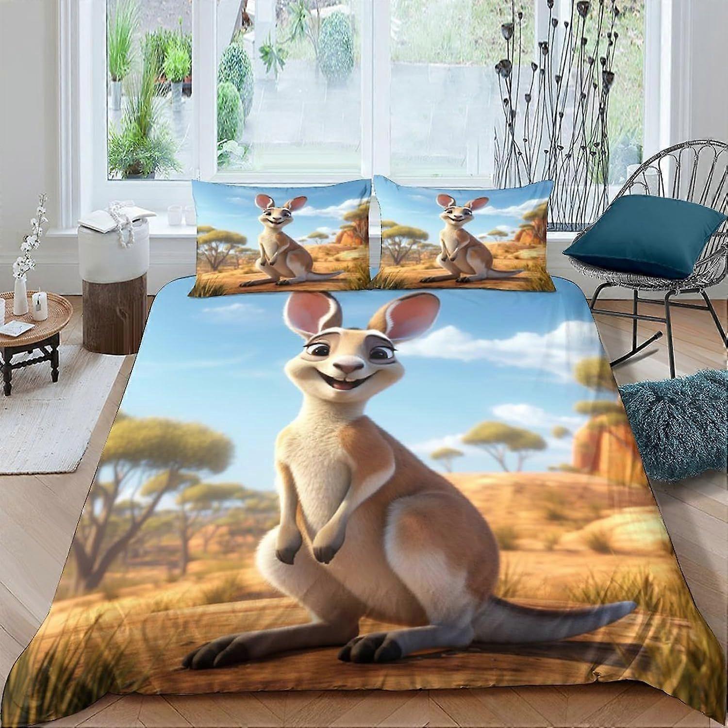 i265 Kangaroo Duvet Cover 3 Piece Set One-sided Soft Hotel Quality Microfiber Quilt Cover with Zipper Closure Bedding Set Double u265