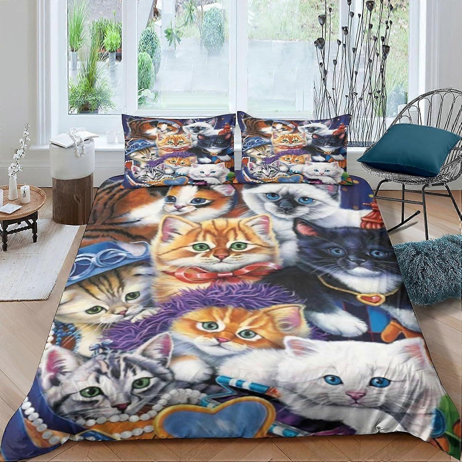 i304 Cartoon Cat Comforter Cover Bedding Duvet Cover Set 3D Print Quilt Cover, Soft Microfibre Set Zipper with Pillowcases,for Boys Girls 3 Pieces Dou
