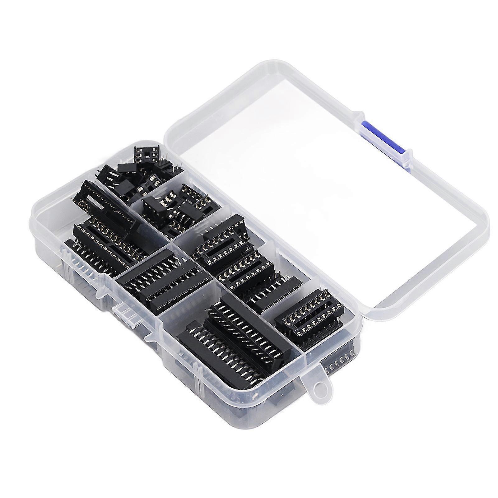 IC Chip Socket Assortment Kit - 66pcs Insulated Plastic Flat Pin Circuit Components, 6P-28P Sizes