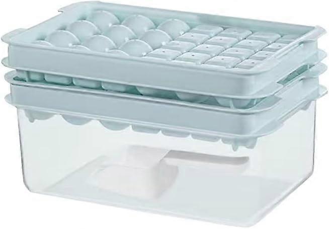 Ice Cube Tray, Ball Mold with Lid, 64PCS Spherical & Cube Ice Maker with Case Spoon for Whiskey Tea (BLUE)
