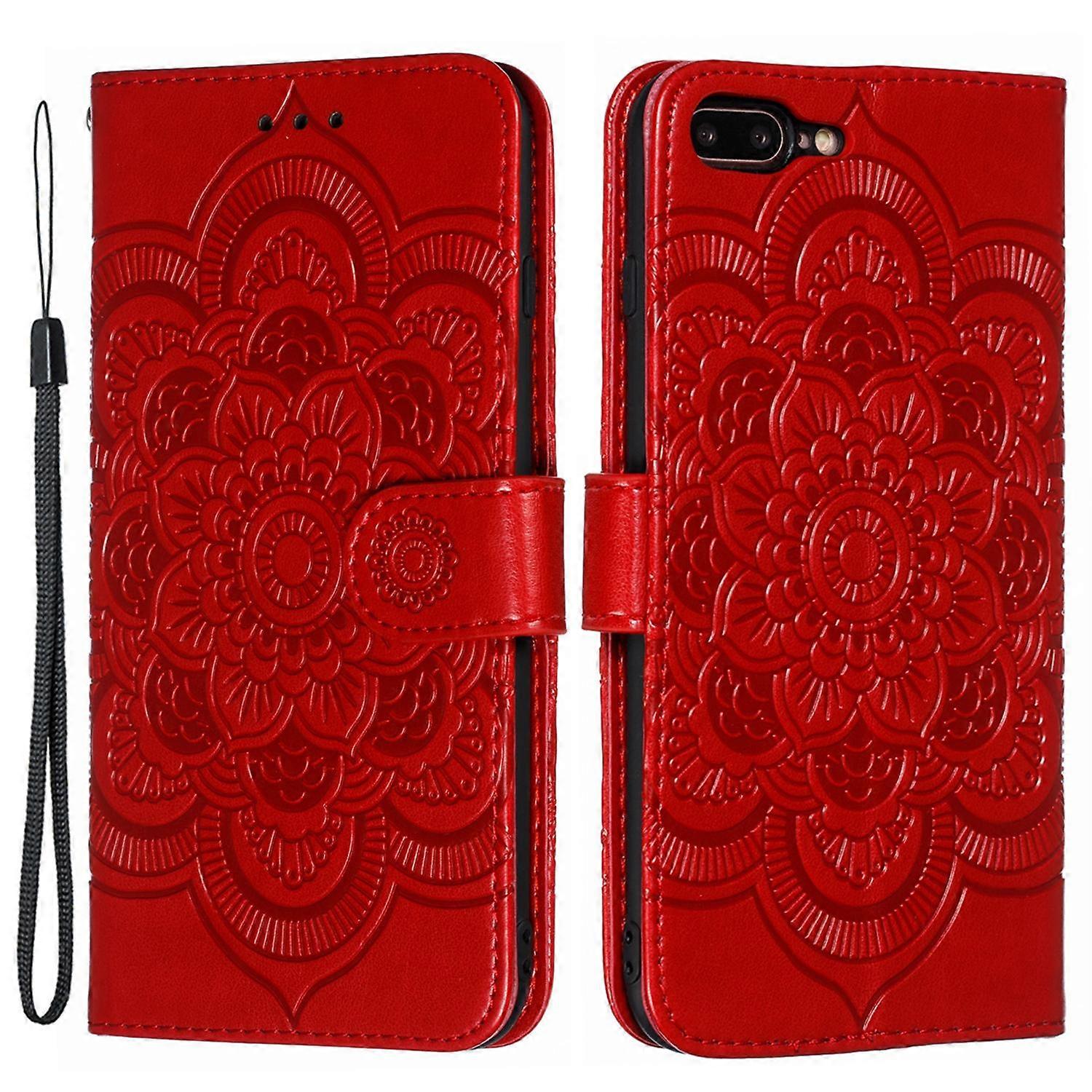 Imprint Mandala Flower Wallet Stand Flip Leather Case with Strap for iPhone 8 Plus/7 Plus 5.5 inch
