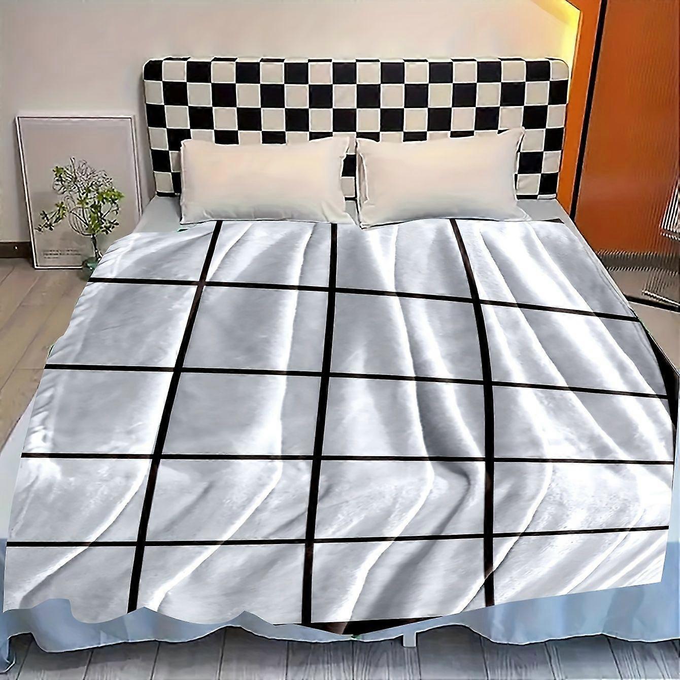 [In stock]Versatile Use Luxurious Nine Mesh Flannel Blanket, Warm Polyester Throw with Elegant Black and White Grid Patt-tfcxz401