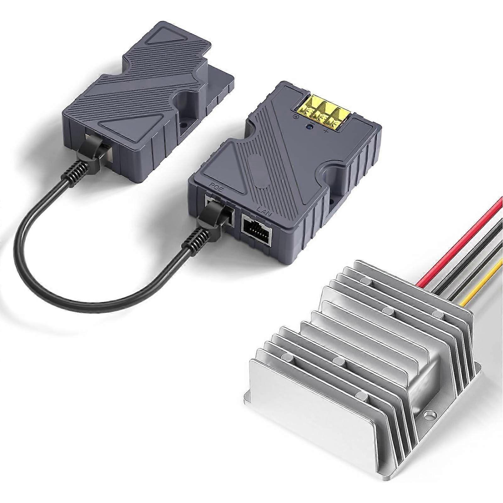 150W GigE PoE Injector with Surge ESD Guard 12V to 48V DC Step UP Converter Ethernet Adpater Kit for Dish V2