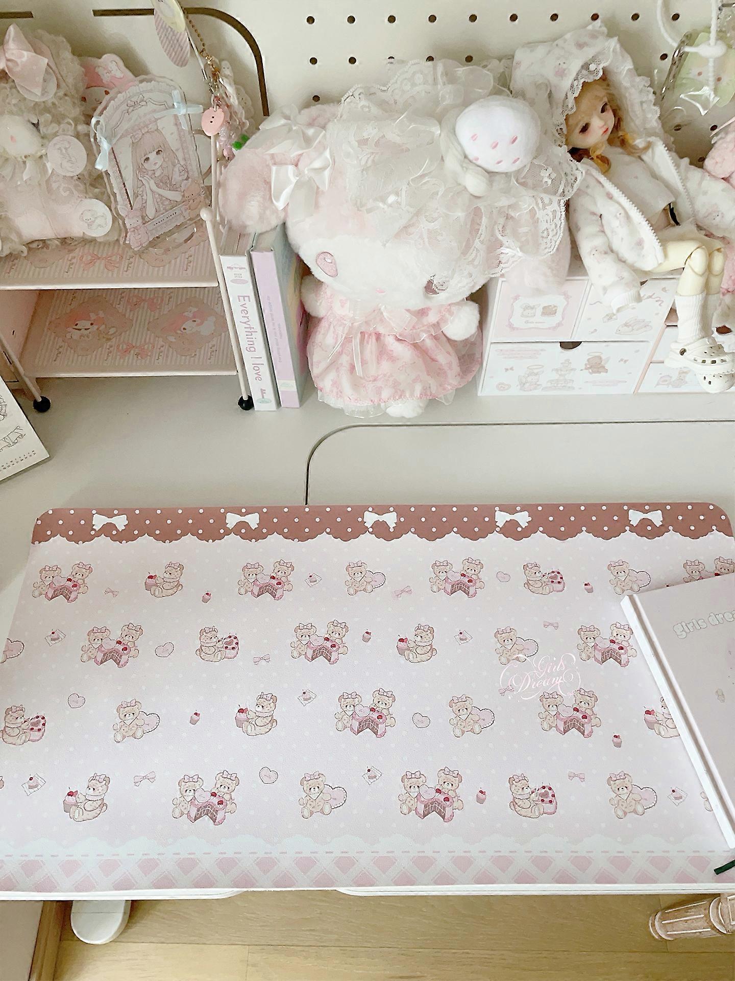 Ins Style Mouse Pad with Bear Design PU Leather Waterproof Non-slip Girl Dormitory Desk Pad Office Study Computer Keyboard Mat
