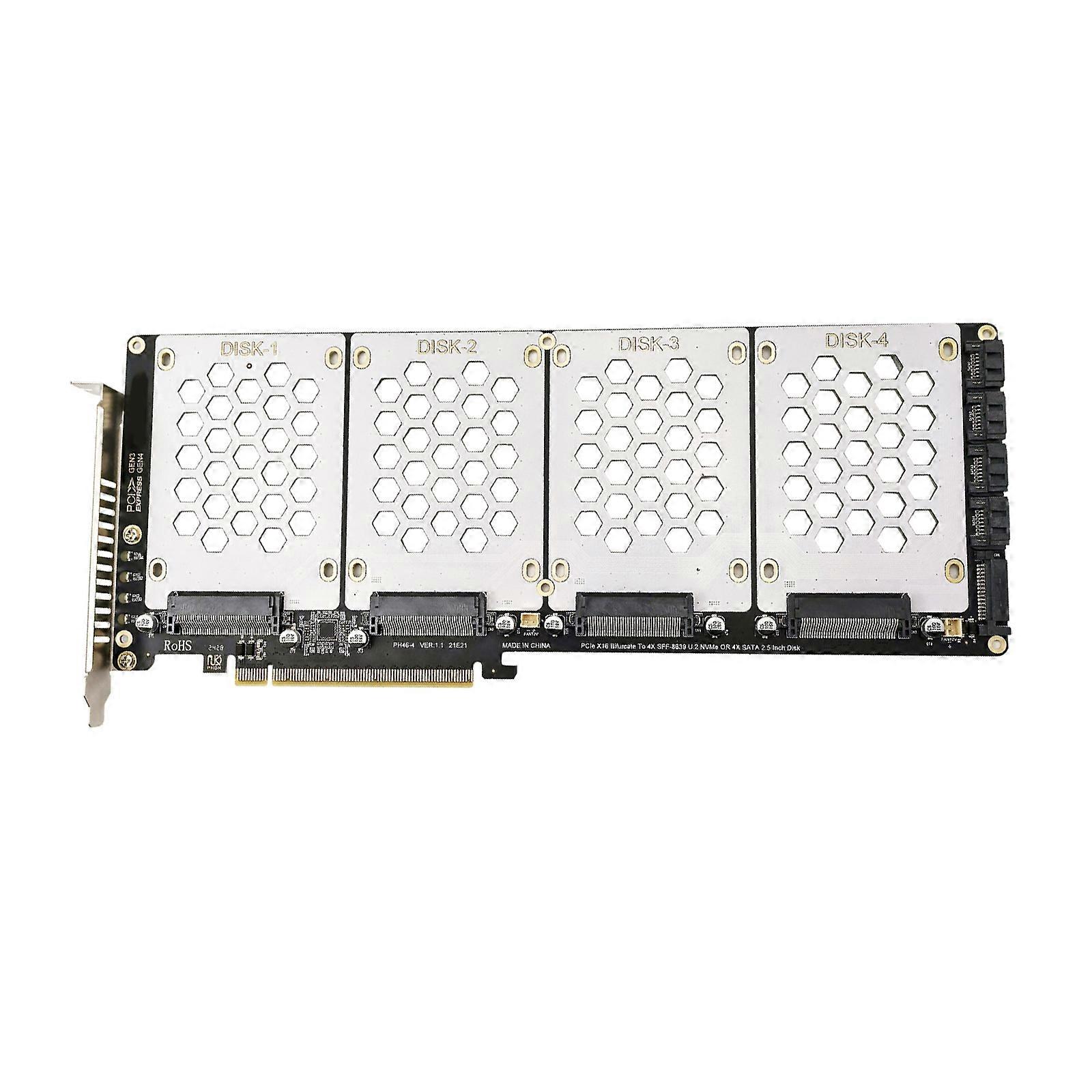 Internal PCIe X16 Card for Quadruple M.2 SFF8639 NVMe Solid Disk Features LED Activity Lights and Strong Heat Dissipation Multicolor