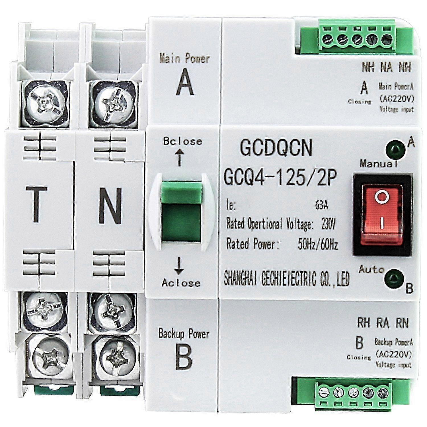 Dual Power Automatic Fer Switch Smgq2-63 / 2p Circuit Breaker Home Rail Installation