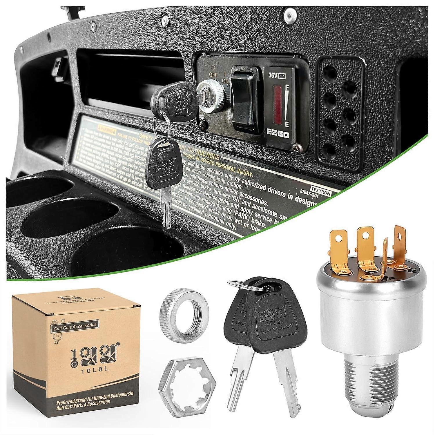 Ignition Switch for EZGO TXT, Medalist, Marathon, Workhorse, ST, Shuttle Golf Cart, Uniquely Keyed Starter, 4 Terminals Prong, Replace 33639G01, 3