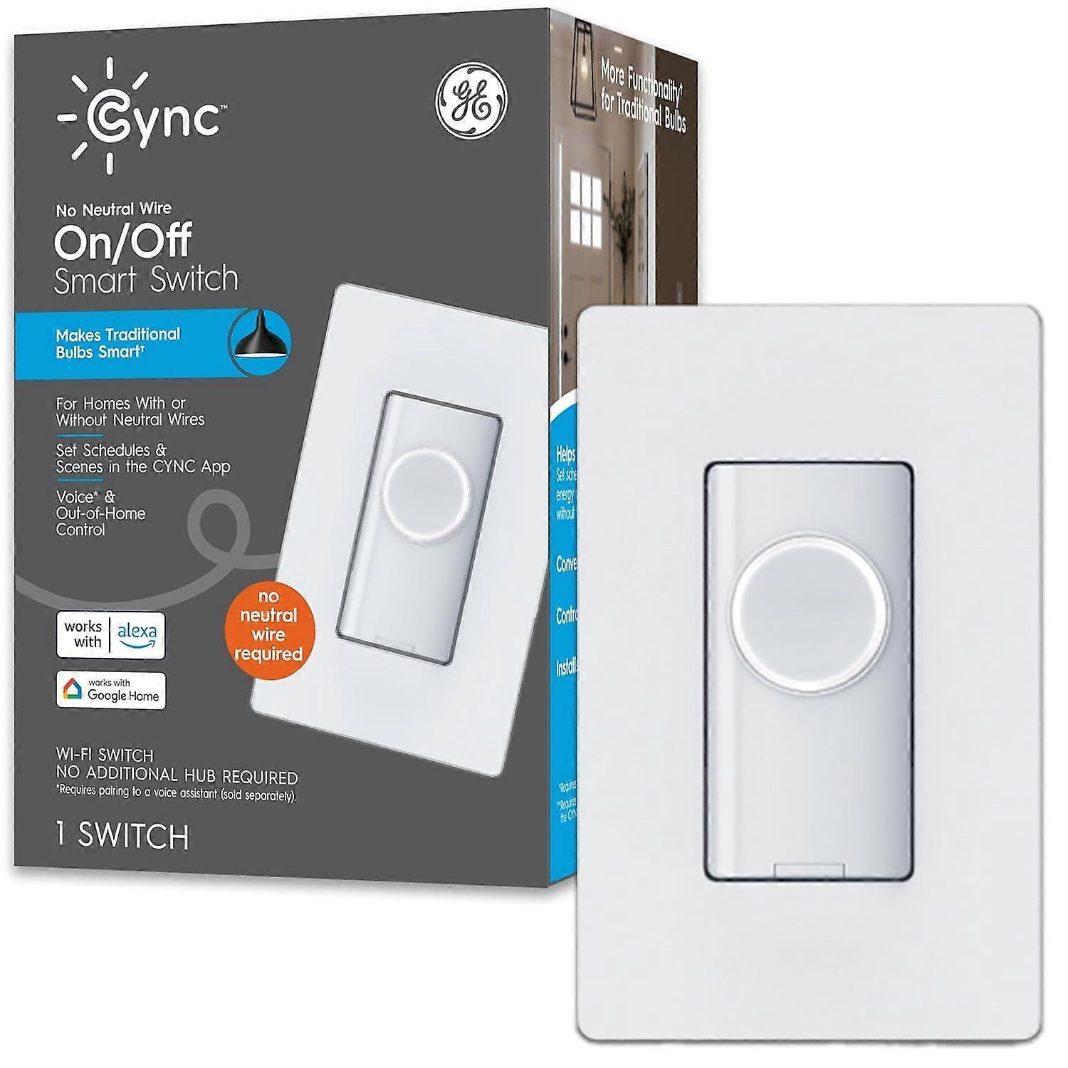 GE Smart Light Switch On/Off Button Style, No Neutral Wire Required Smart Switch, 2.4 GHz WiFi Works with Amazon Alexa and Google Home, White No Neutr