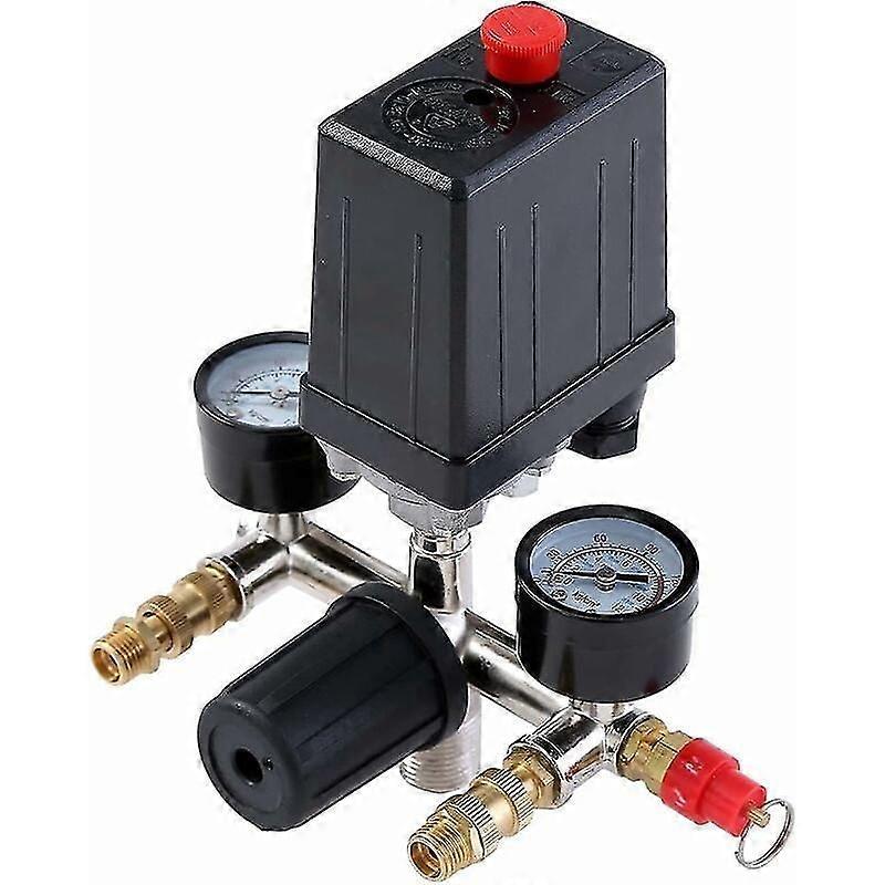 G1/4" Air Compressor Pressure Switch with Dual Outputs and Safety Valve Gauges Regulator