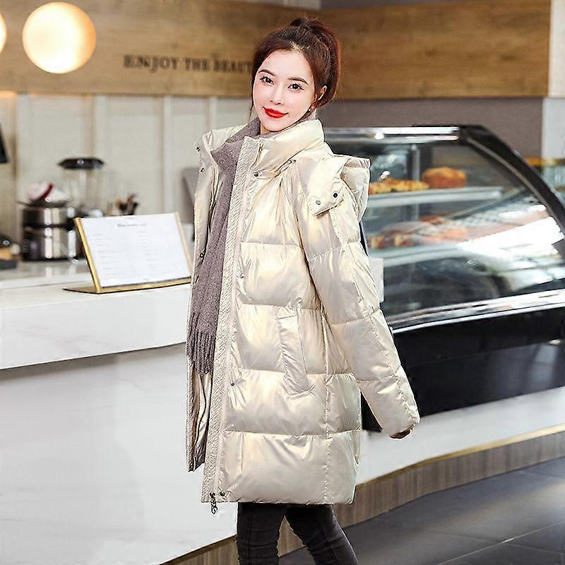 Winter Bright Face Medium Long Down Cotton Padded Jacket Thickened Coat With Hooded Loose Clothes