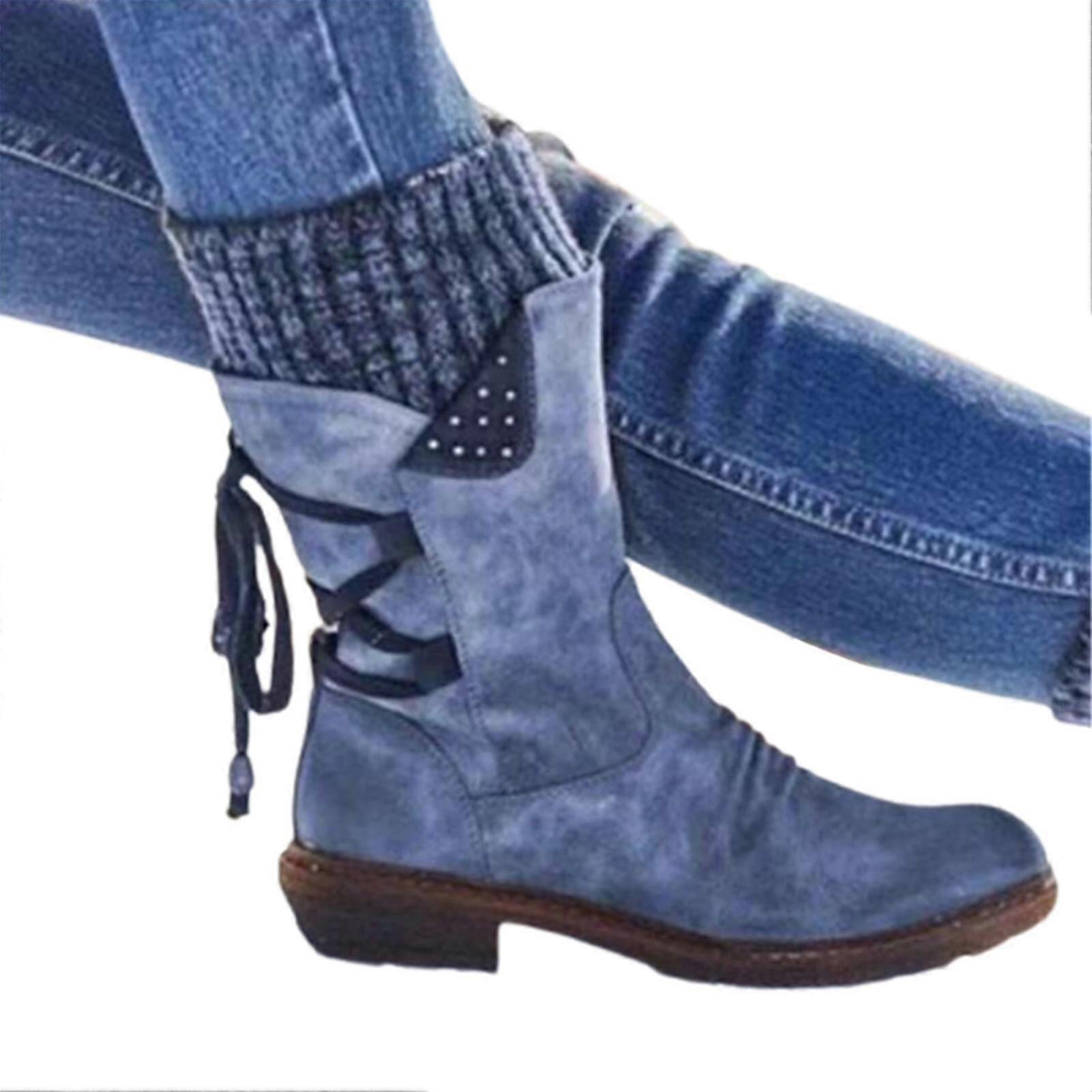 Women's Winter Warm Back Lace Up Snow Boots With Thick Heel Vintage Style Design
