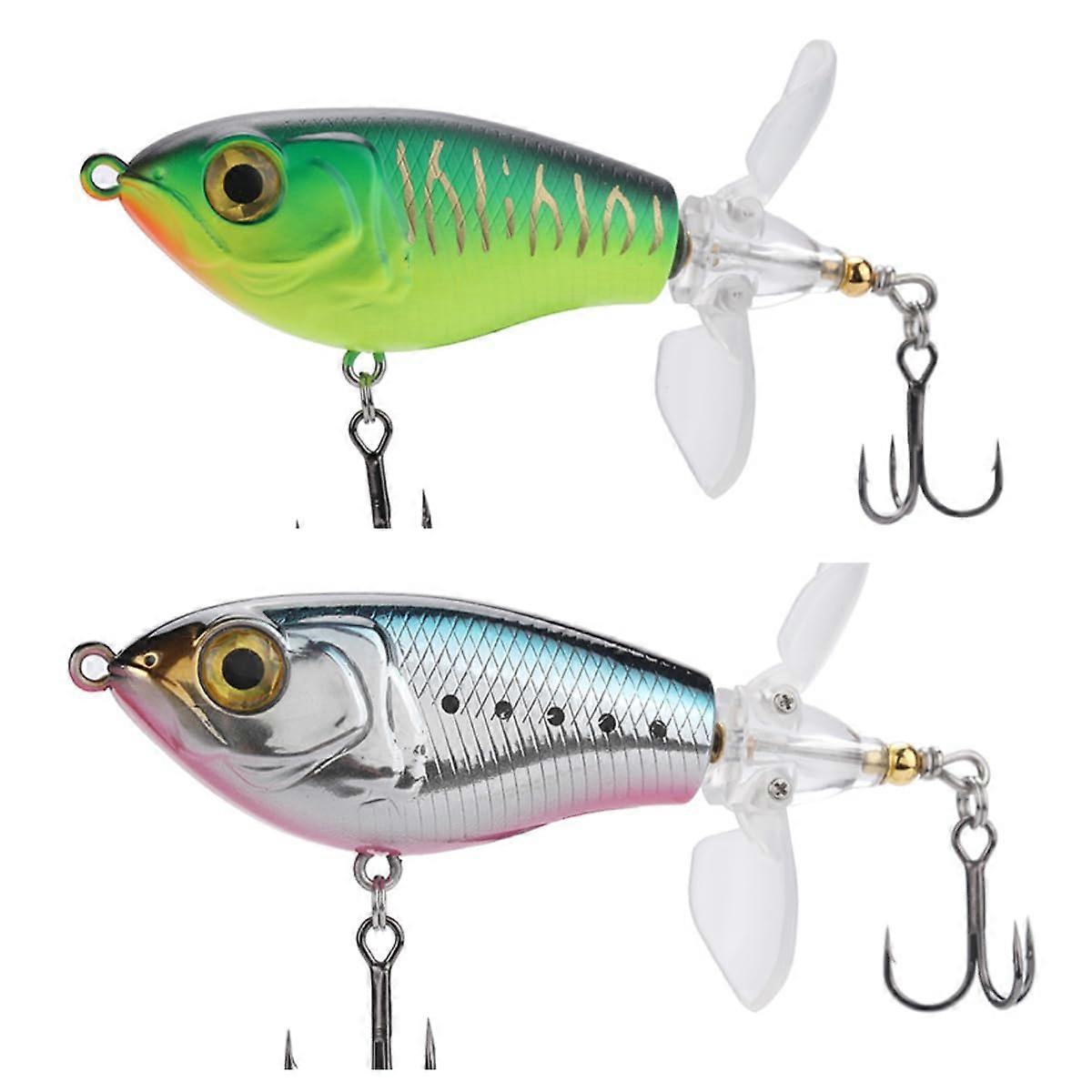 Topwater Lures 2 Pieces 2.56 Inch 9g Hard Bait Wobbler Tail Rotating Popper Surface Lure