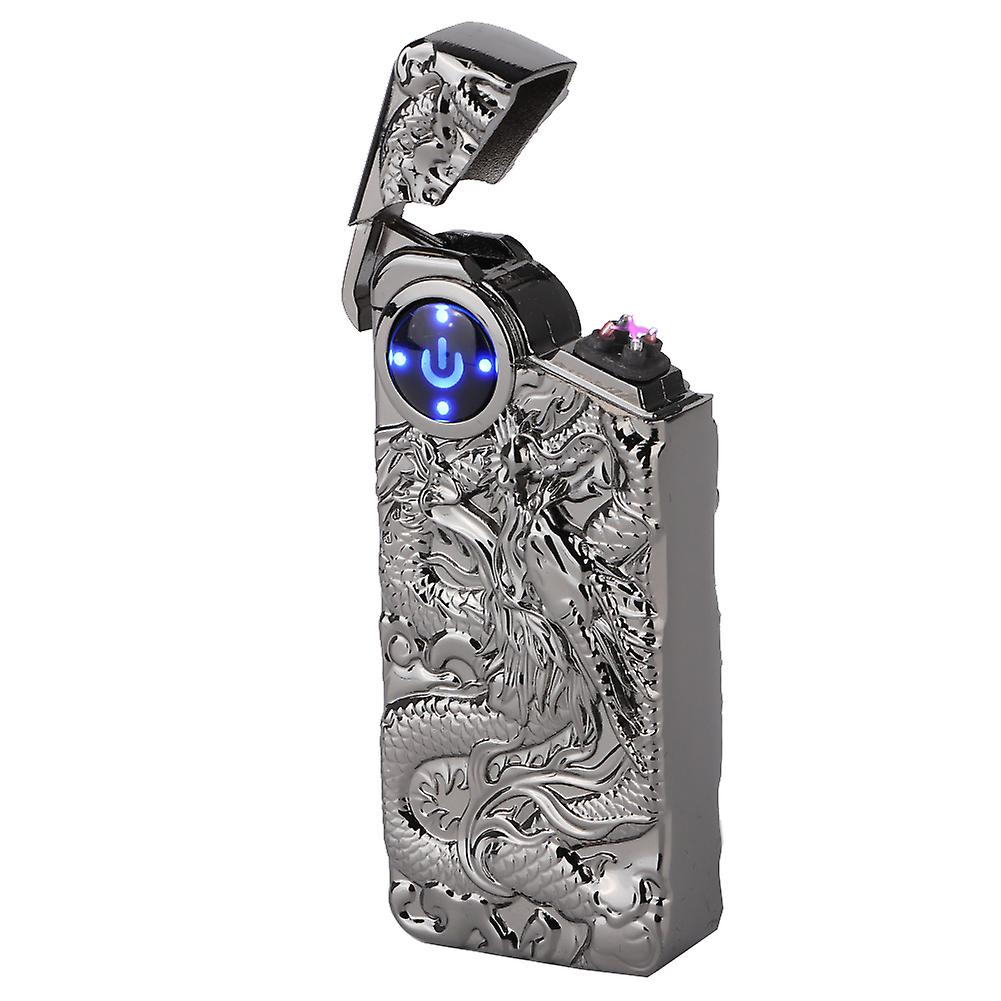 Fashionable Stylish Pattern Dual Arc Charging Lighter Touching Sensing Pulse Cigarette LighterSilver