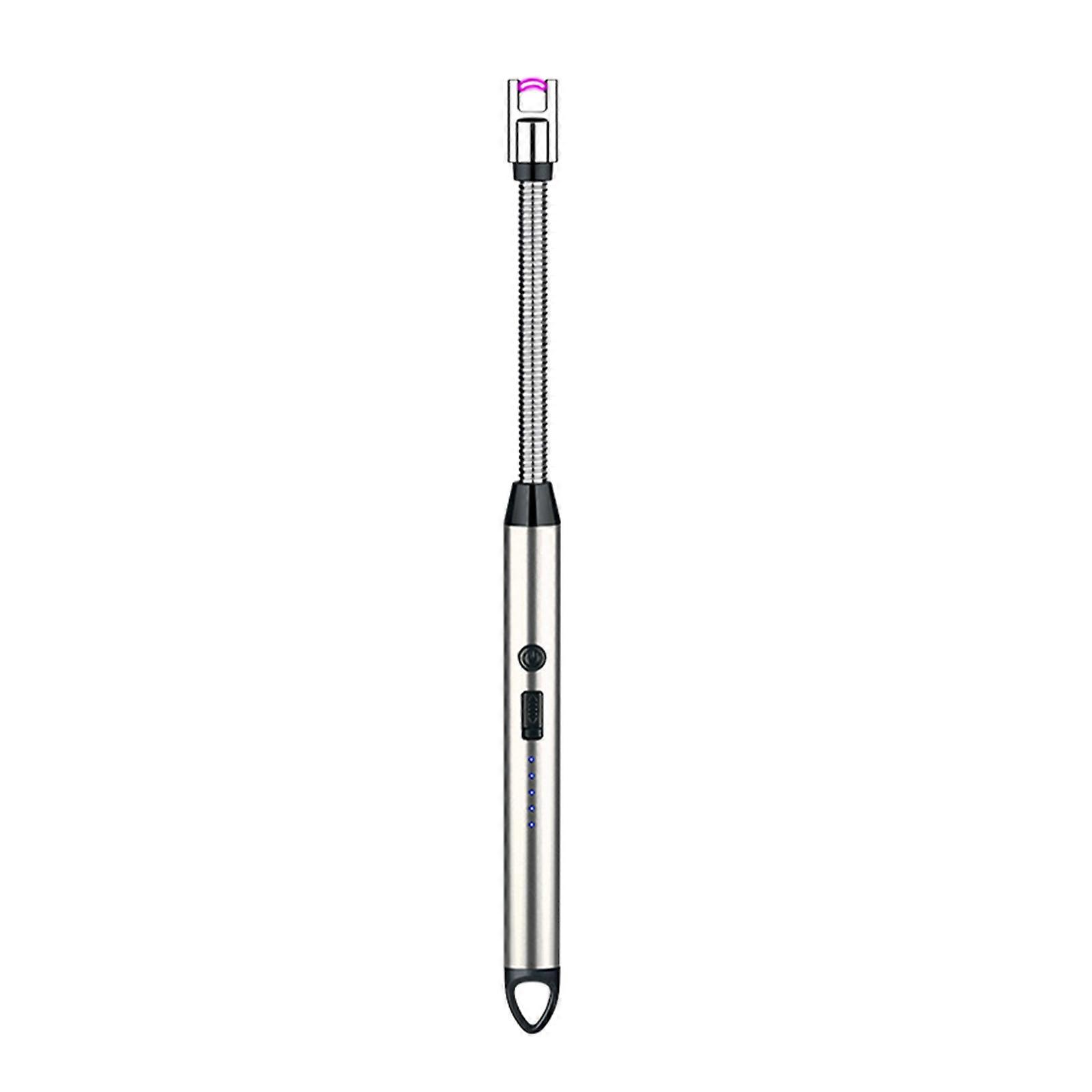 Electric Rechargeable Arc Lighter Battery Display Long Flexible Neck USB Lighter Flameless Lighters Camping Lighter Silver
