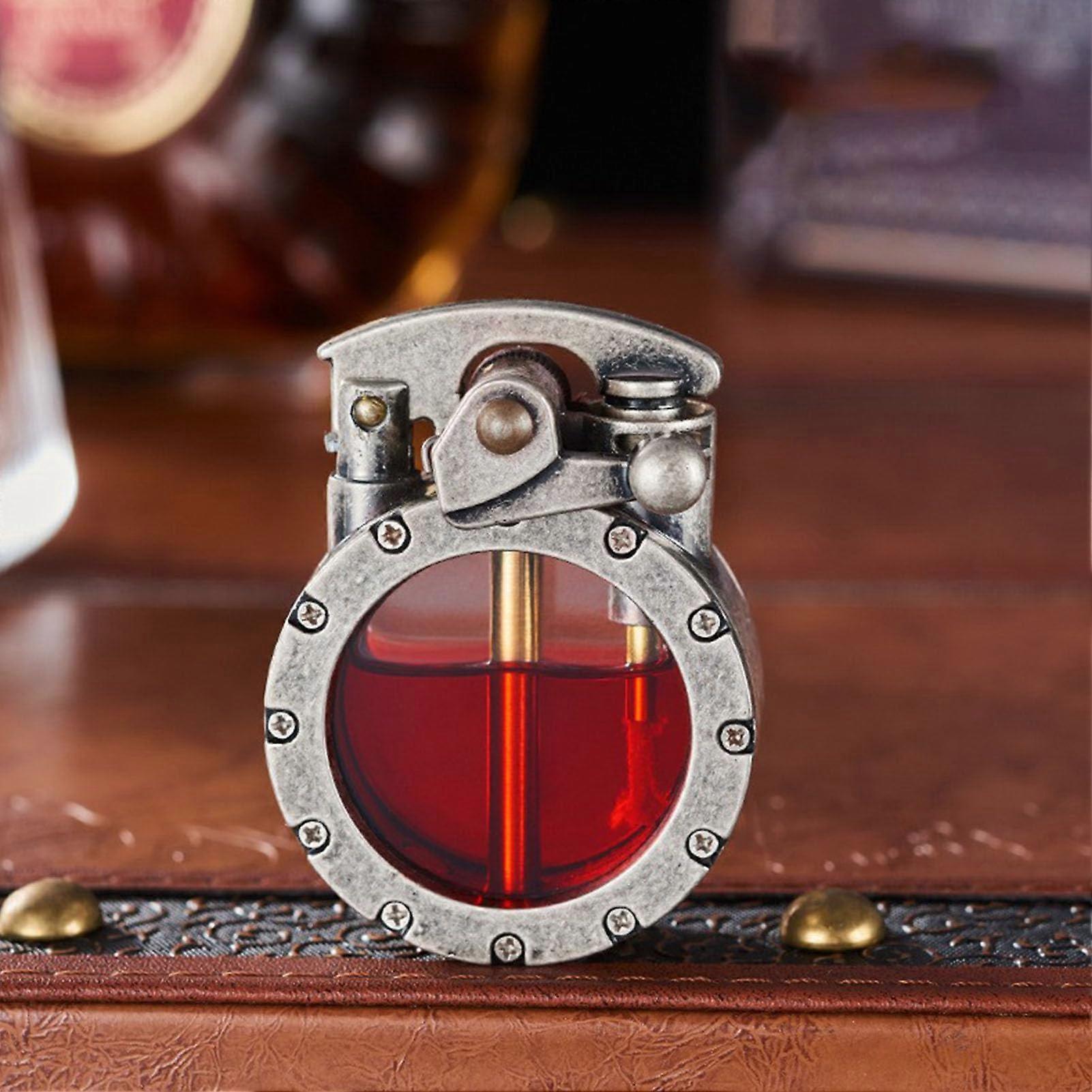Mecha Metal Rocker Lighter, Retro Kerosene Lighter, Brass With Transparent Fuel Chamber, White Trench Lighters Gift Box