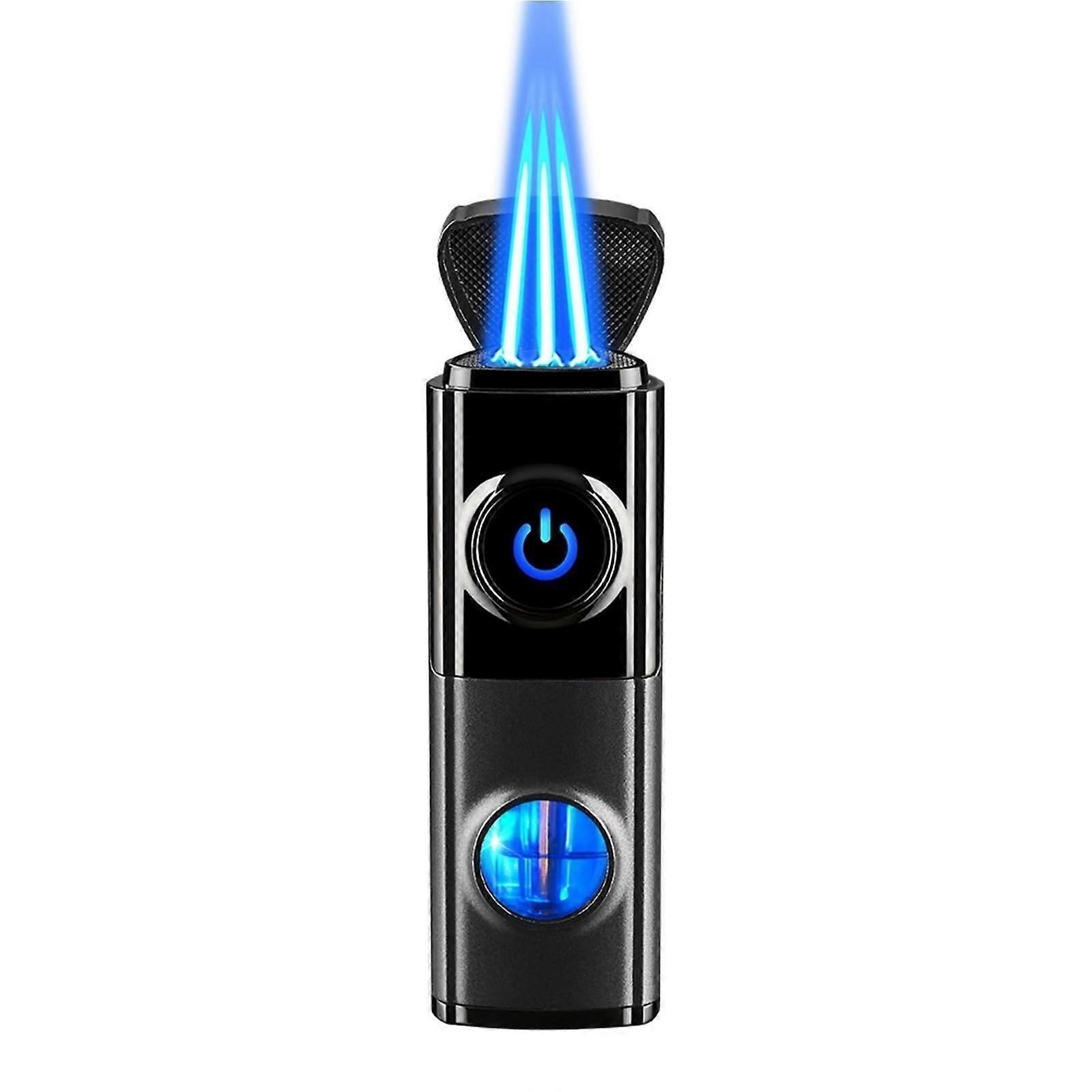 Vintage Metal Flip Touch Sensing Butane Lighters Windproof Triple Flame Adjustable Power Refillable Lighters Black