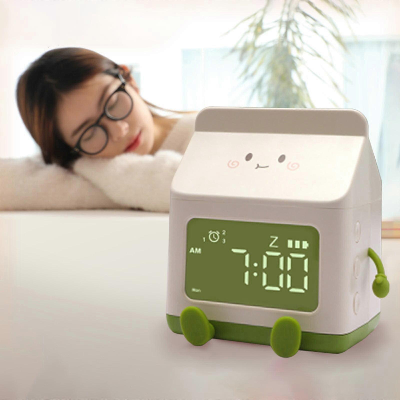 Jacenvly Black Tech High Performance Chip Milk Box Alarm Clock, Compatible with Student Time Management, Plastic Digital Desk Clock for Kids & Heavy