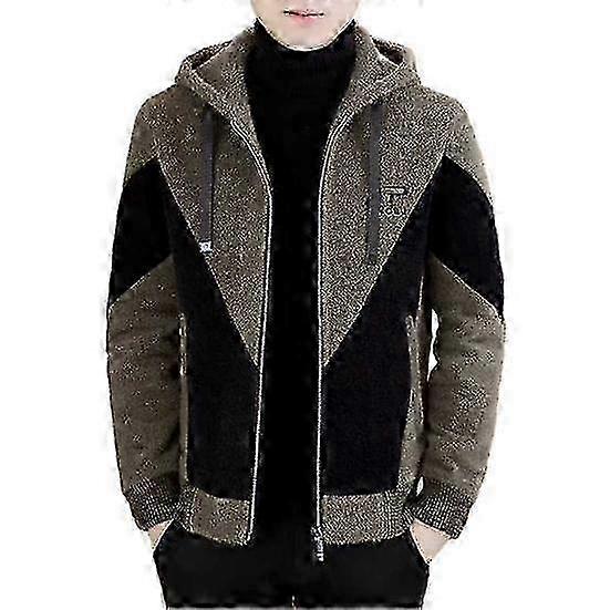 Hooded Color Matching Jacket for Men - Thick Loose Drawstring Cardigan with Zipper Closure, Long Sleeve Warm Plus Size Coat for Fall & Winte