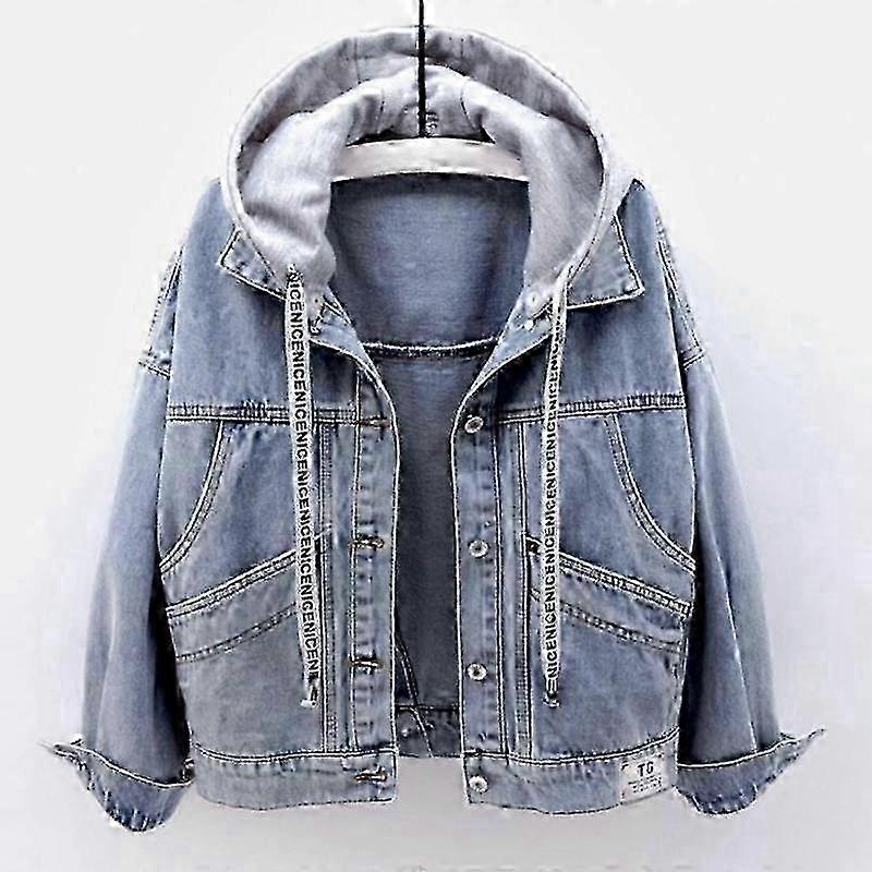 Korean Fashion Denim Women's Long-Sleeve Pockets Hooded Jacket with Loose Fit and Versatile Top