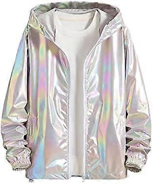 Metallic Hooded Jacket for Men & Women - Holographic Shiny Jacket Lightweight Zip-Up Casual Outdoor Jacket for Hiking Travel Daily Wear