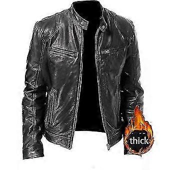 Jaqueta de couro masculina de couro com gola alta Slim-Fit com fecho à prova de vento e zíper