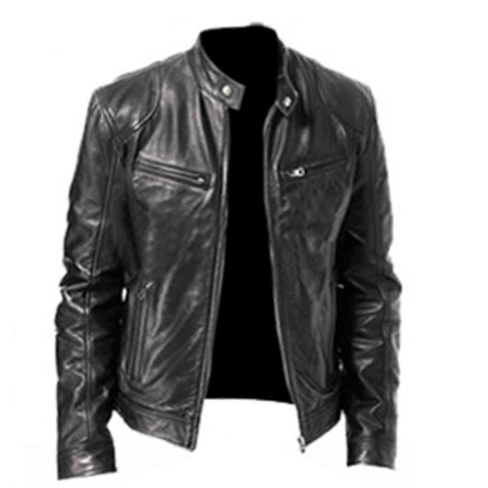 Fashion Men's Slim Fit Leather Jacket, Anti-Wind Stand Collar PU Motorcycle Jacket with Lapel Zipper Coat for Men