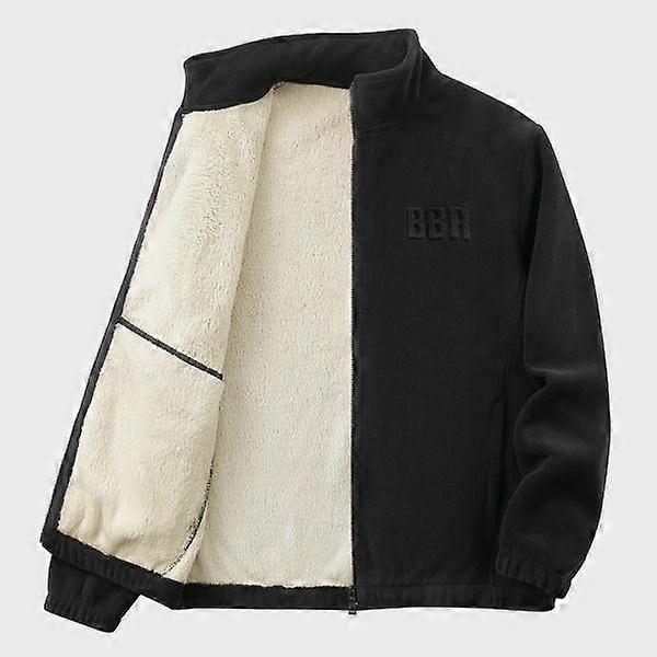 BBR Men's Winter Jacket - Casual Stand Collar Polyester Fiber Solid Color Zipper Closure Warm Lining Full-Length Zipper Pockets Stylish Casu