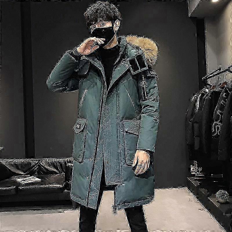 Mid-Length Down Jacket for Men's Winter with Big Fur Collar, Over-the-Knee Length, Warm & Cold-resistant Coating