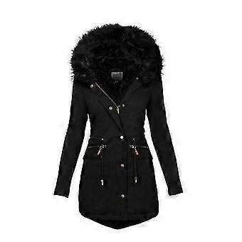 Women's twill pike coat jacket, winter fashion warm long hooded jacket with artificial fur collar
