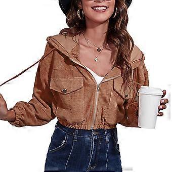 Women Hooded Corduroy Jacket Casual Long Sleeve Drawstring Hoodie Cropped Jacket for Autumn Winter
