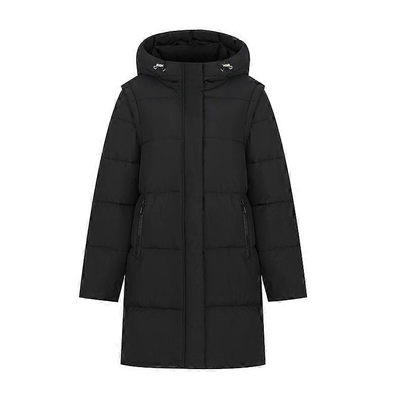 Women's winter thickened mid-length cotton-padded jacket with detachable sleeves and knee-length