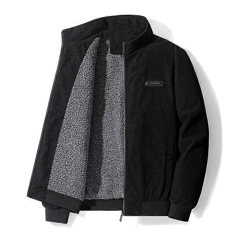 Men's Jacket Corduroy Jacket Stand-Up Collar Teddy Fur Lined Regular Fit Zip Winter Jacket Warm with Pockets