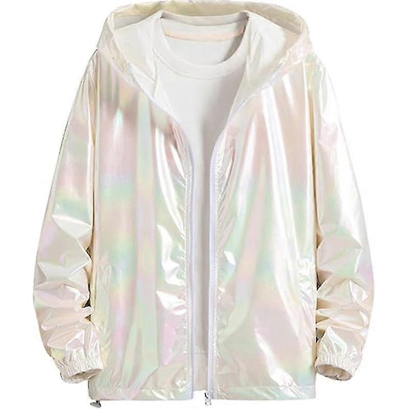 Men's Metallic Jacket Lightweight Zip Up Holographic Shiny Hooded Jackets