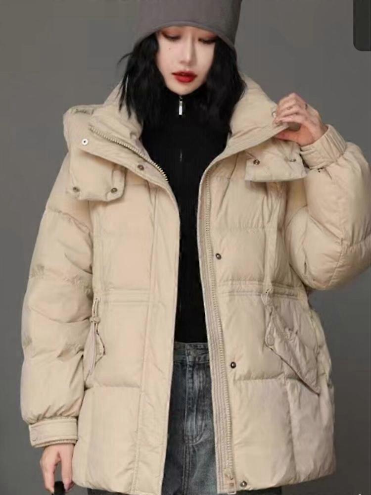 Puffer Jacket Women Winter New Outerwears Korean Simple Solid Drawstring Down Jackets Thick Loose Warm Hooded Women's Parker