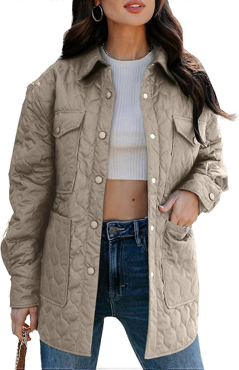 Quilted Jackets for Women Lightweight Long Sleeve Button Down Puffer Jacket Warm Winter Coat Outerwear with Pockets