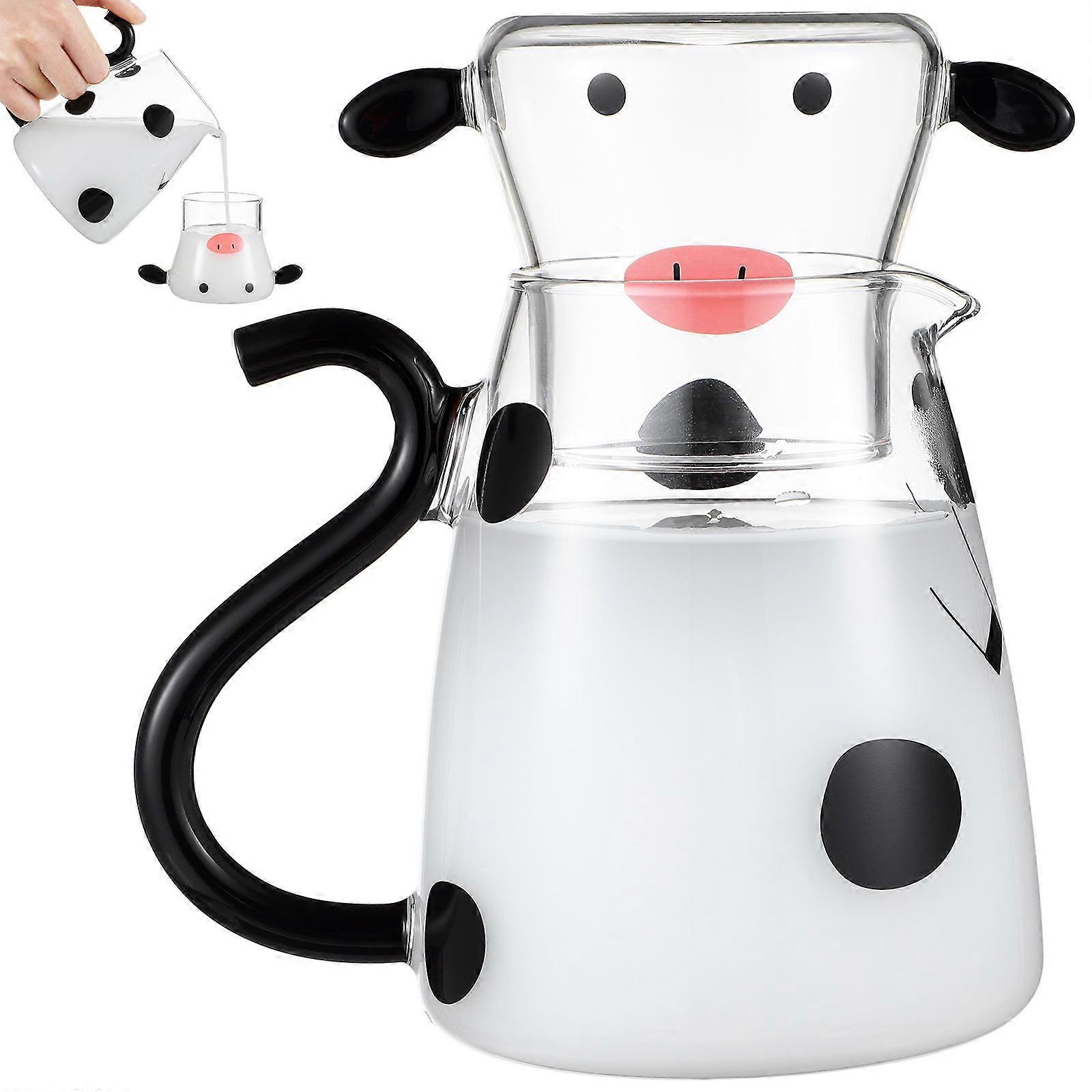 Cow Jug and Mug Heat-Resistant Microwavable Dust-Proof Storage-Friendly Glass Water Pitcher with Cup 1Set