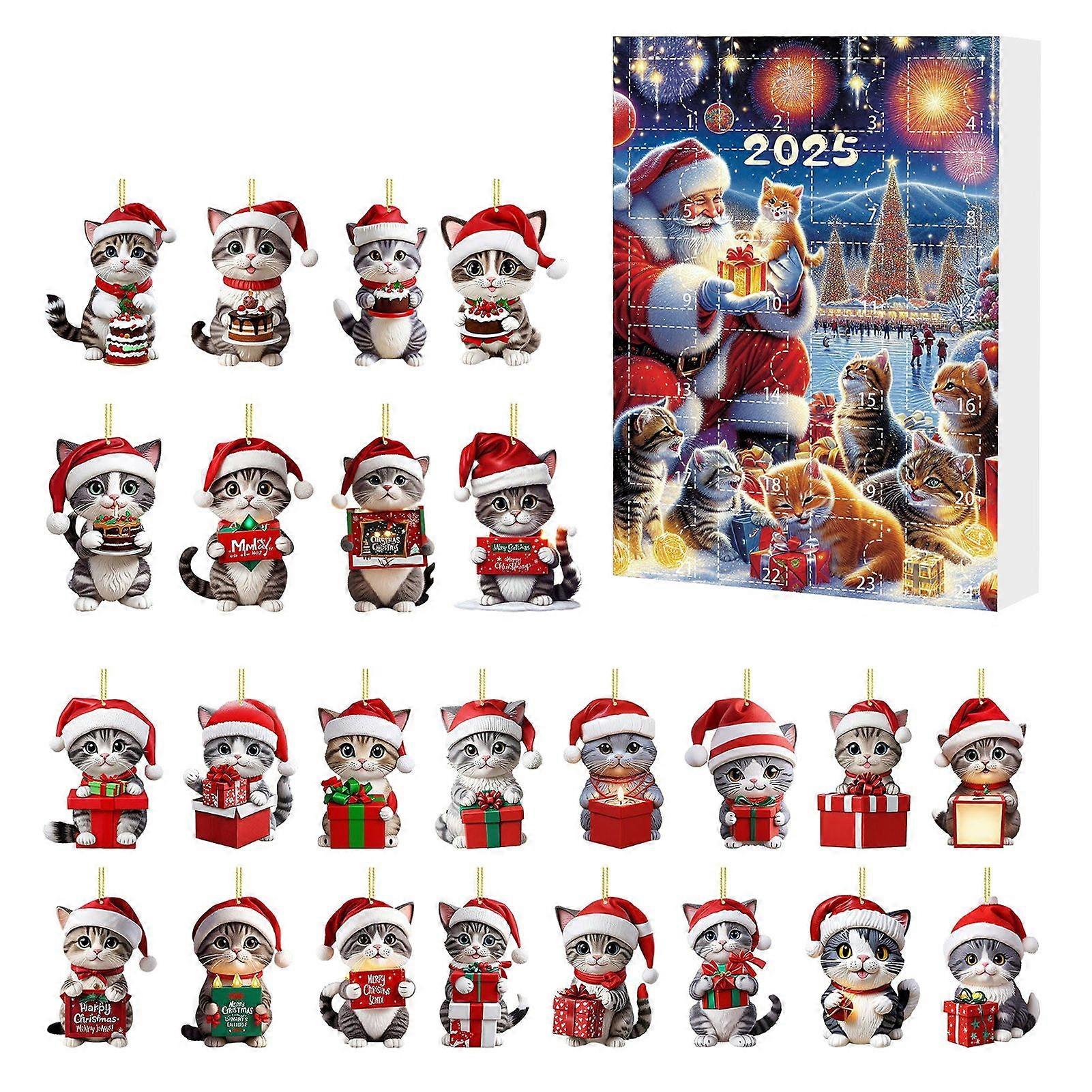 Jikaixiang Cat Advent Calendars 2025 2D Acrylic Cute Cat Ornaments 24 Days Christmas Countdown Calendar Holiday Tree Hanging Decoration for Cat Lovers