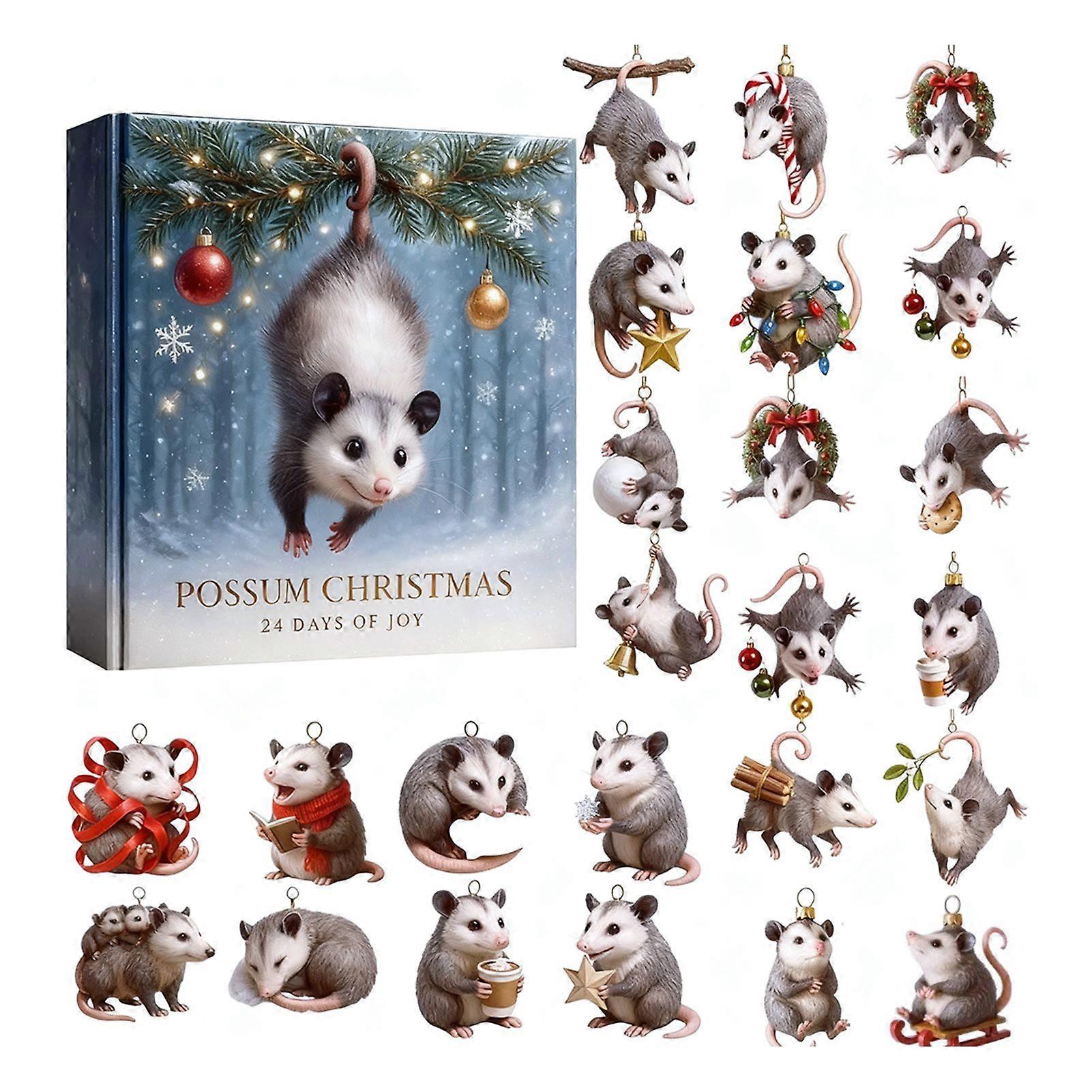 Jikaixiang Christmas Advent Calendar Colorful Bells Possum Design 24-Day Countdown Christmas Tree Pendant Festive Ornaments
