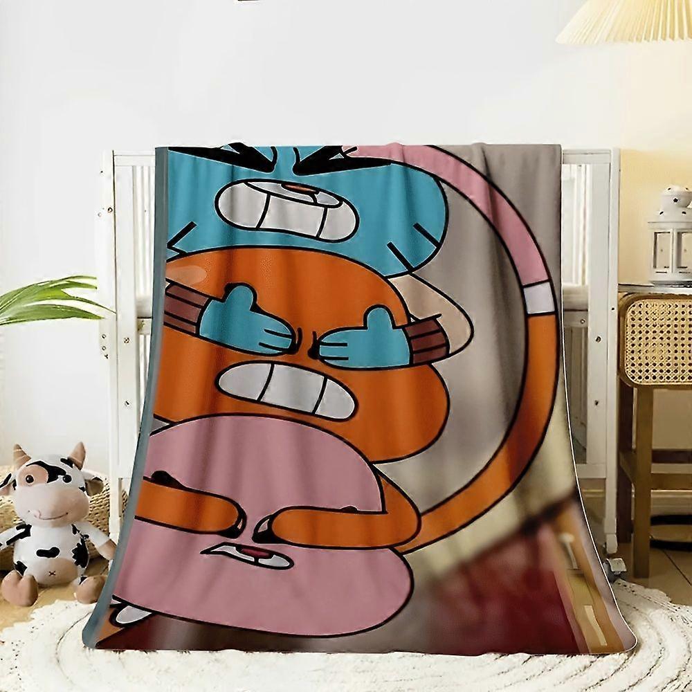 [JIT]1pcs, Flannel blankets, Gumball and Darwin inspiration, Flannel smooth blanket, geometric splicing style for multip-QAZLK61