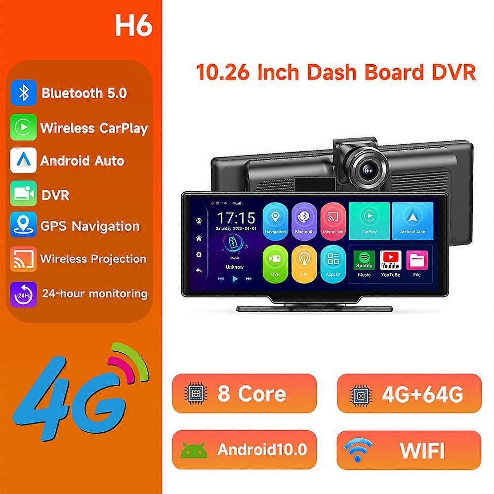 JIUYIN10.26" ADAS Dash Cam Wireless CarPlay & Android Auto Car DVR With GPS 24h Park Monitor Video Recorder Night Vision 64GB