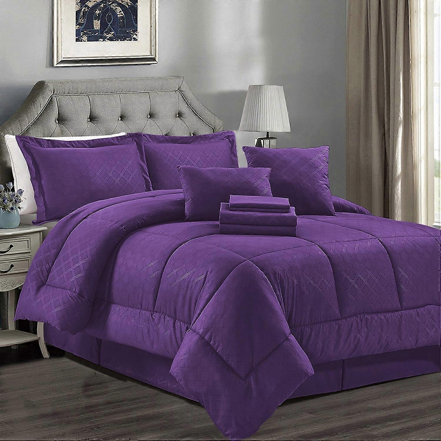 JML Purple Twin Comforter Set - 10 Pieces Bedding Set Bed in a Bag with Comforters, Sheets, Bed Skirt, Decorative Pillows, Pillowcase & Sham