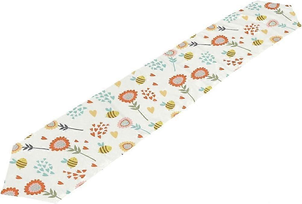Flowers Bees Table Runner Placemat 13x90 in . Printed Table Linen Cloth