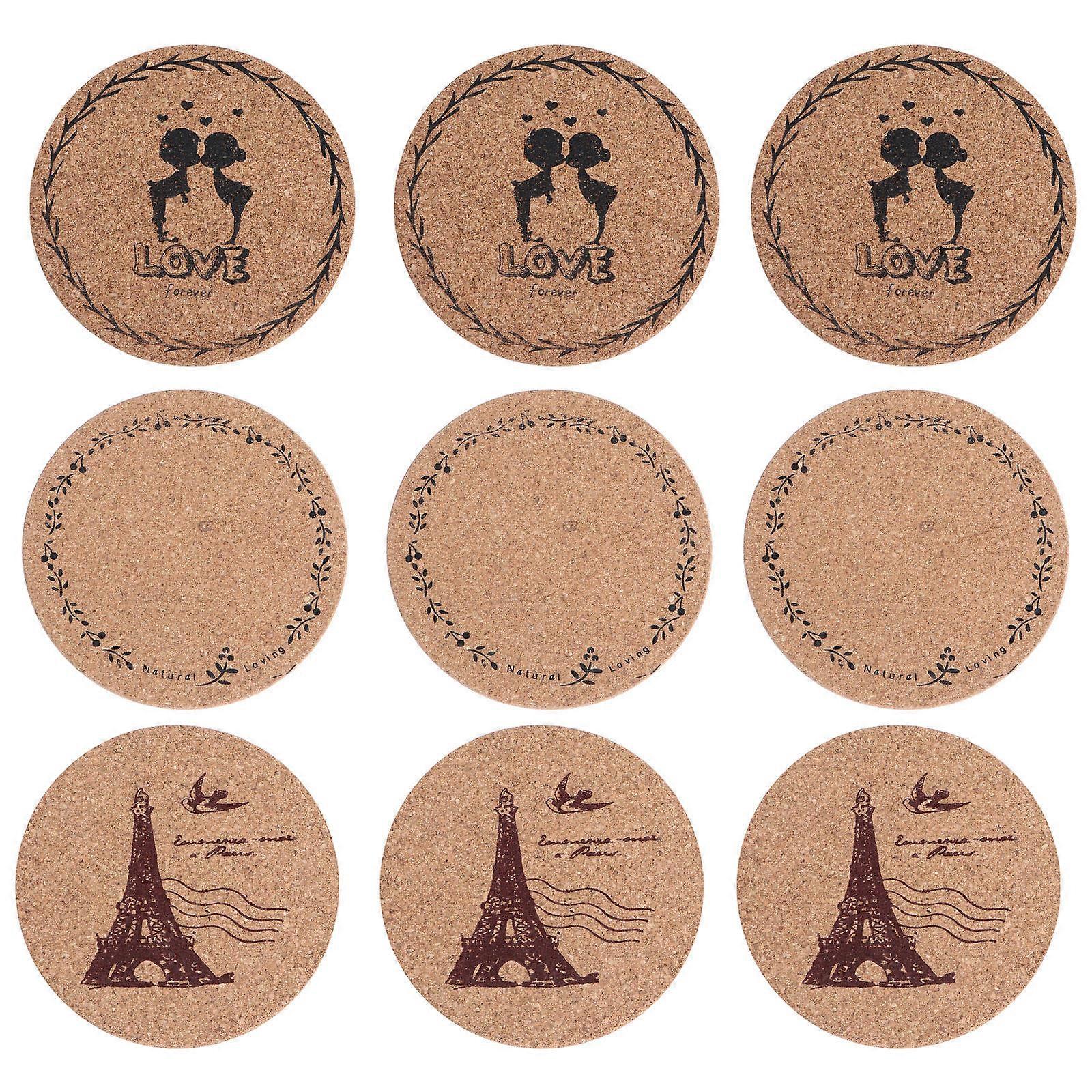 Table Heat-Resistant Placemat Brown Cork with 36Pcs Round Coasters