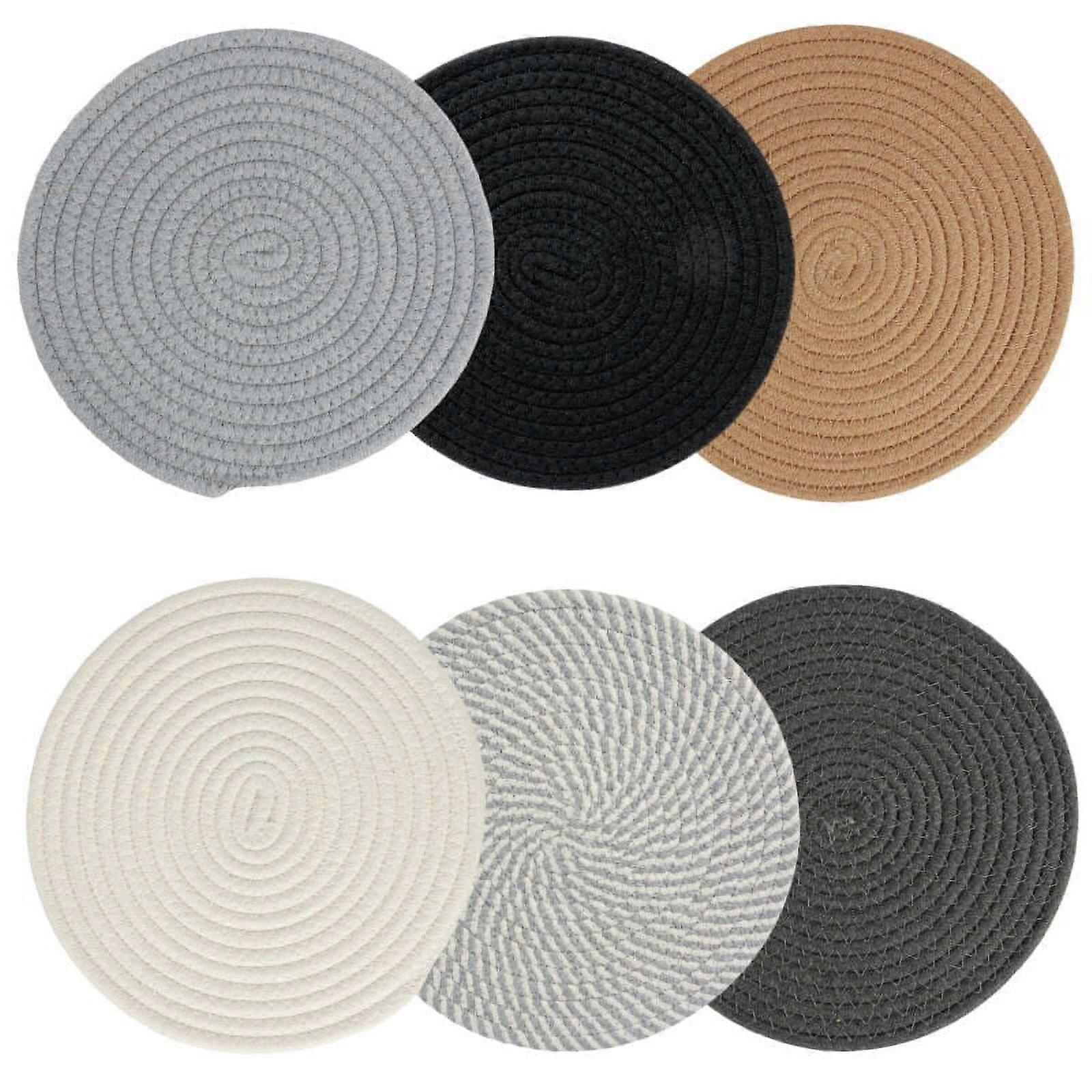 6pcs Cup Mat, 18cm/25cm Heat-Resistant, Absorbent Cotton Rope, Washable Table Mat for Cup, Bowl, Plate, Pot – Minimalist Design
