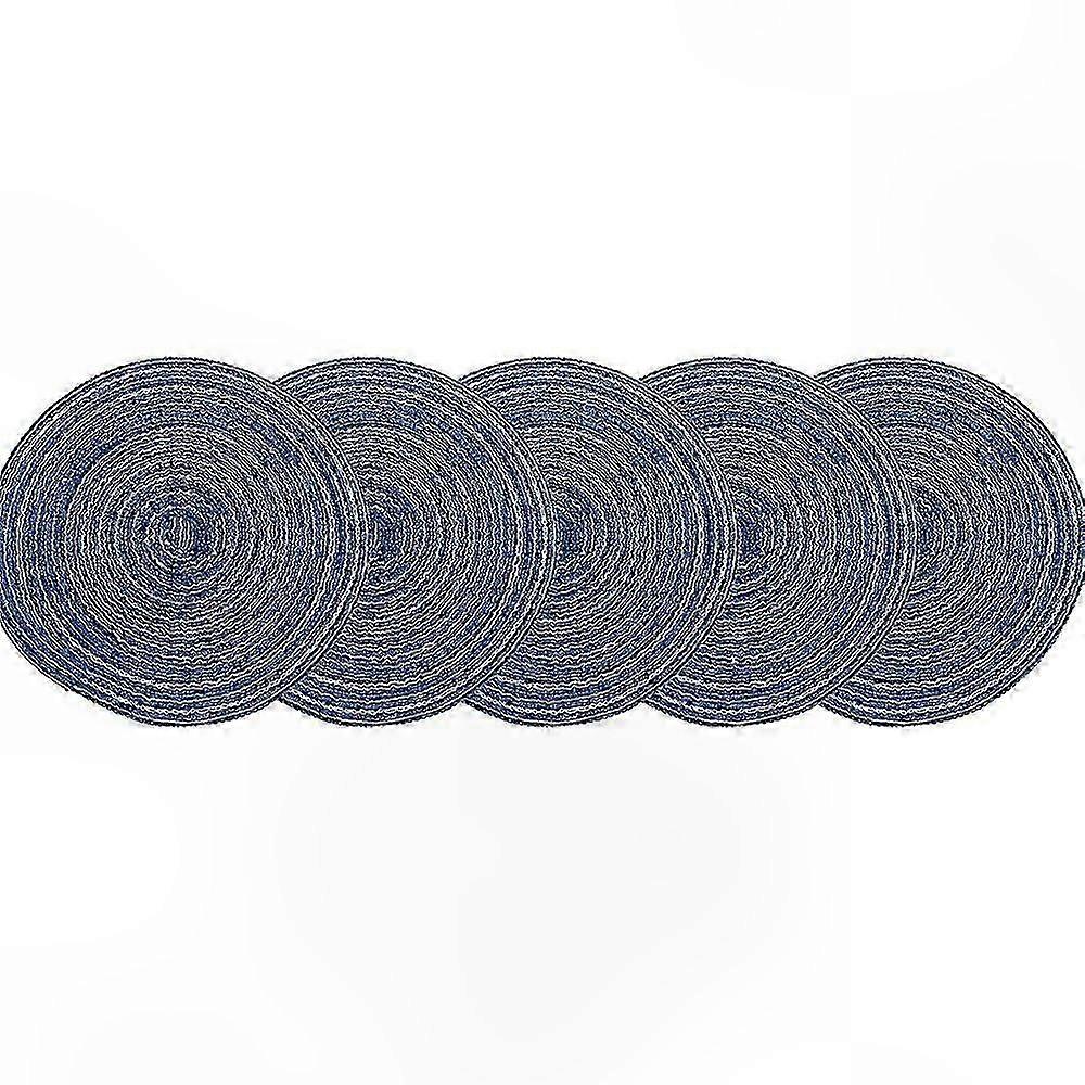 Blue Woven Cotton Placemats, Set of 5, 18 Inch, Heat & Stain Resistant Non-Slip Dining Table Mats