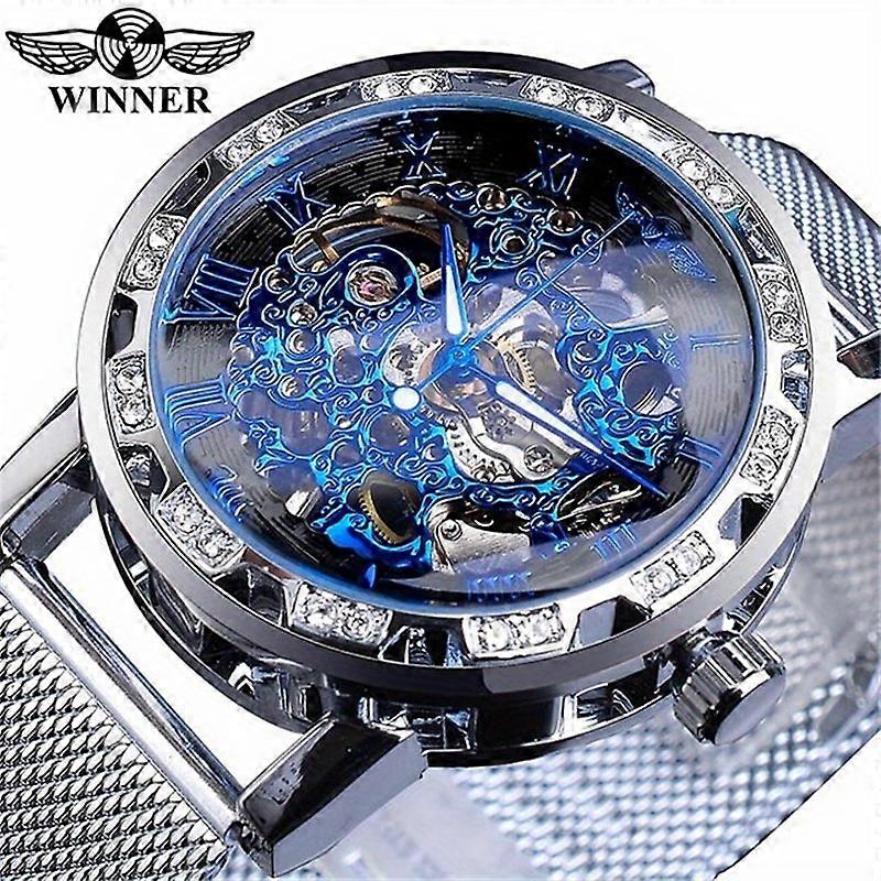 JUEGE* 1pc Men's Fashion Classic Mechanical Watch With Artificial Rhinestone Inlaid & Hollow Mesh Strap, Men's Wrist Watch, Ideal choice for