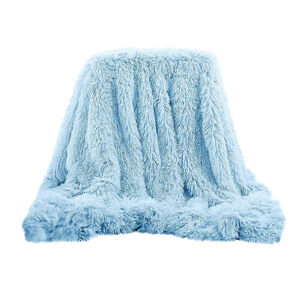 JWDX Blanket, Soft Blanket, Shaggy Long Faux Fur Throw Blanket Fuzzy Lightweight Plush Sherpa Fleece Blue